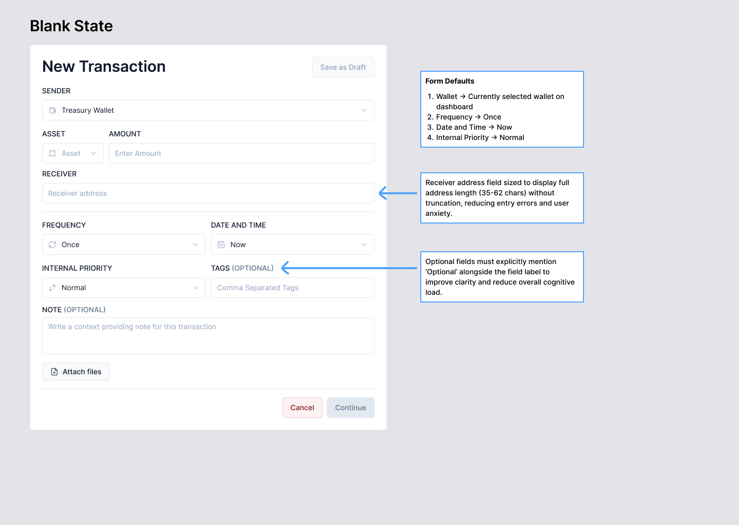 Explore UX patterns for complex financial workflows, including edge cases like streaming payments, fee selection, and validation errors.